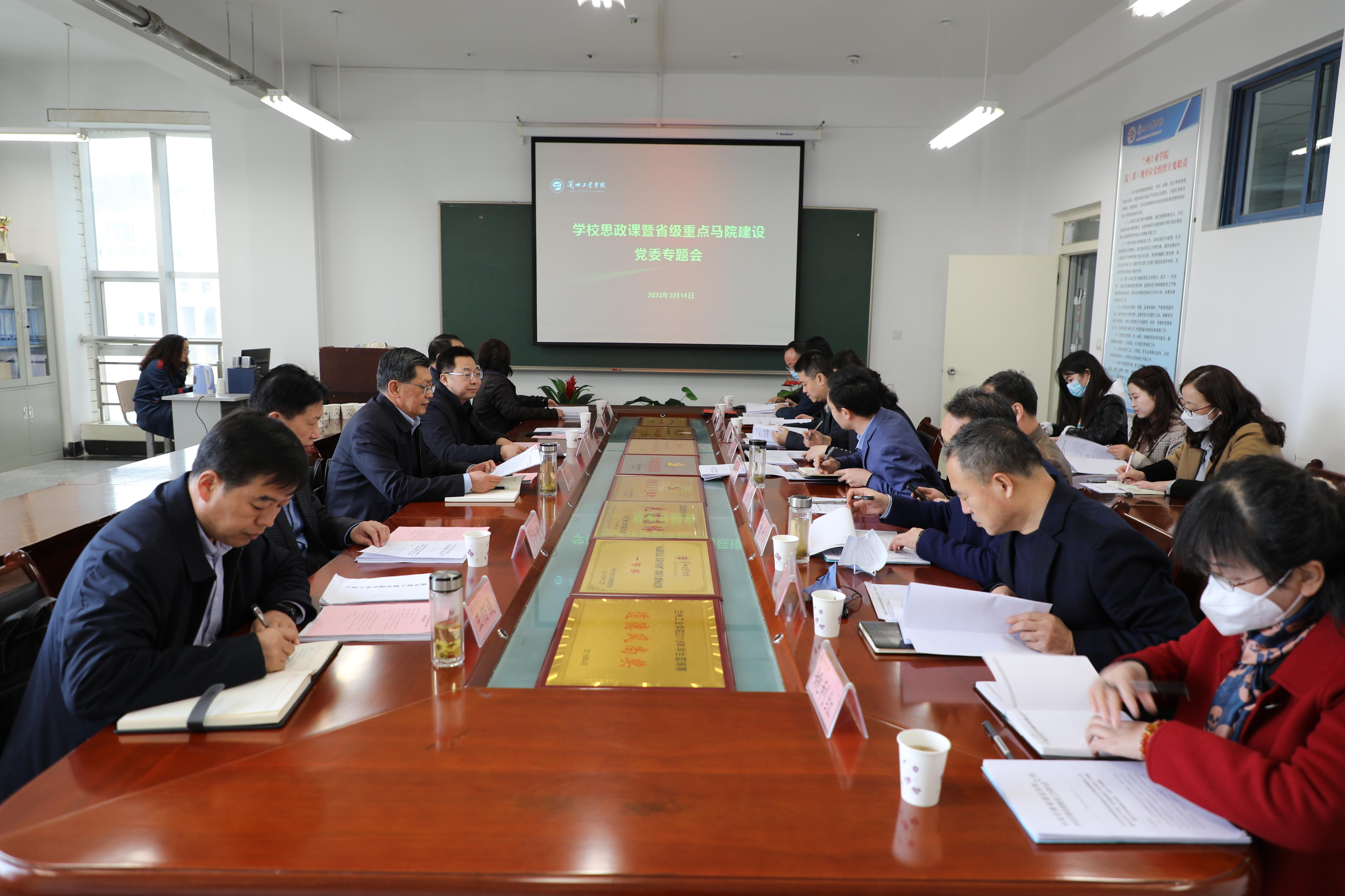 会议重温了习近平总书记在学校思想政治理论课教师座谈会上的重要讲话;深入学习了有关加强思政课和马克思主义学院建设文件精神;马克思主义学院负责人汇报了学校思政课和省级重点马院建设情况。