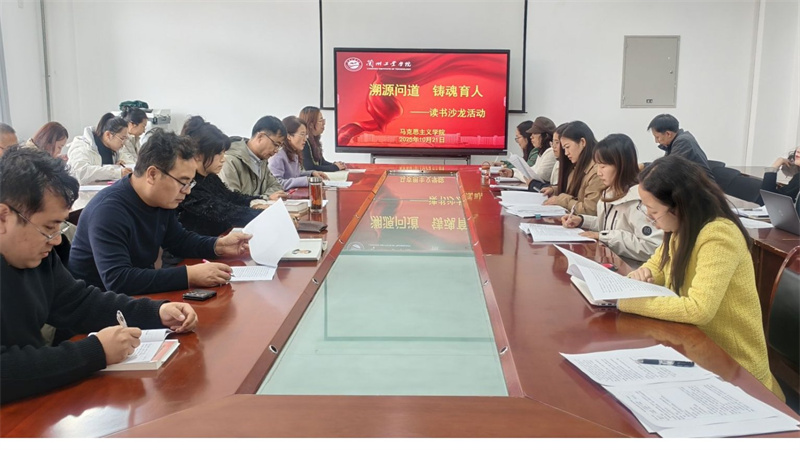 10月21日下午,马克思主义学院在文科实训楼B304会议室举办“溯源问道·铸魂育人”教师读书沙龙,集中交流《习近平谈治国理政》第五卷、《德意志意识形态》《共产党宣言》《马克思主义发展史》等经典研读成果。学院副院长韩艳慧教授主持活动。