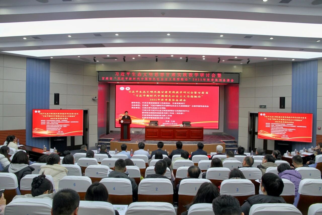 为进一步筑牢高校思政课育人根基,锚定党的创新理论融入思政课教学主责主业,12月25日,由甘肃省“习近平新时代中国特色社会主义思想概论”分教学指导委员会主办,兰州大学马克思主义学院、兰州大学习近平生态文明思想理论与实践研究中心、教育部全国高校思政课名师工作室(刘先春)、甘肃省杨宏伟思政课名师工作室、甘肃省李睿思政课名师工作室联合承办的习近平生态文明思想甘肃实践教学研讨会暨甘肃省“习近平新时代中国特色社会主义思想概论”2025年秋季集体备课会在兰州大学召开。我校马克思主义学院党总支书记罗柏林、党总支副书记马俊年、副院长邱云慧等参会。